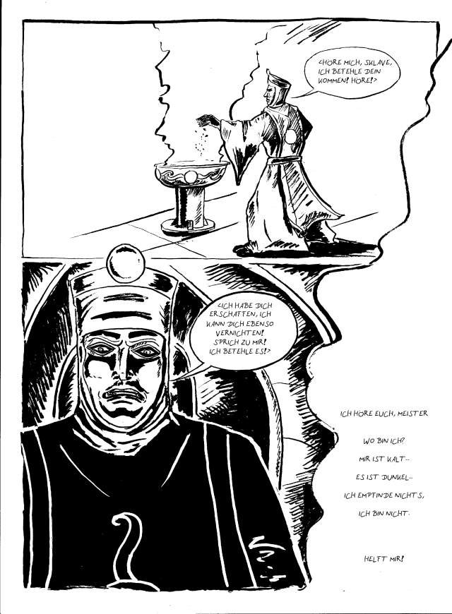 Ich dachte auch, dass manche feine Schraffur mit einer Feder besser käme, vielleicht arbeite ich da noch etwas nach. Macht das Ganze auf jeden Fall dynamischer und der Rahmen und die Sprechblasen lenken nicht vom geschehenen ab.