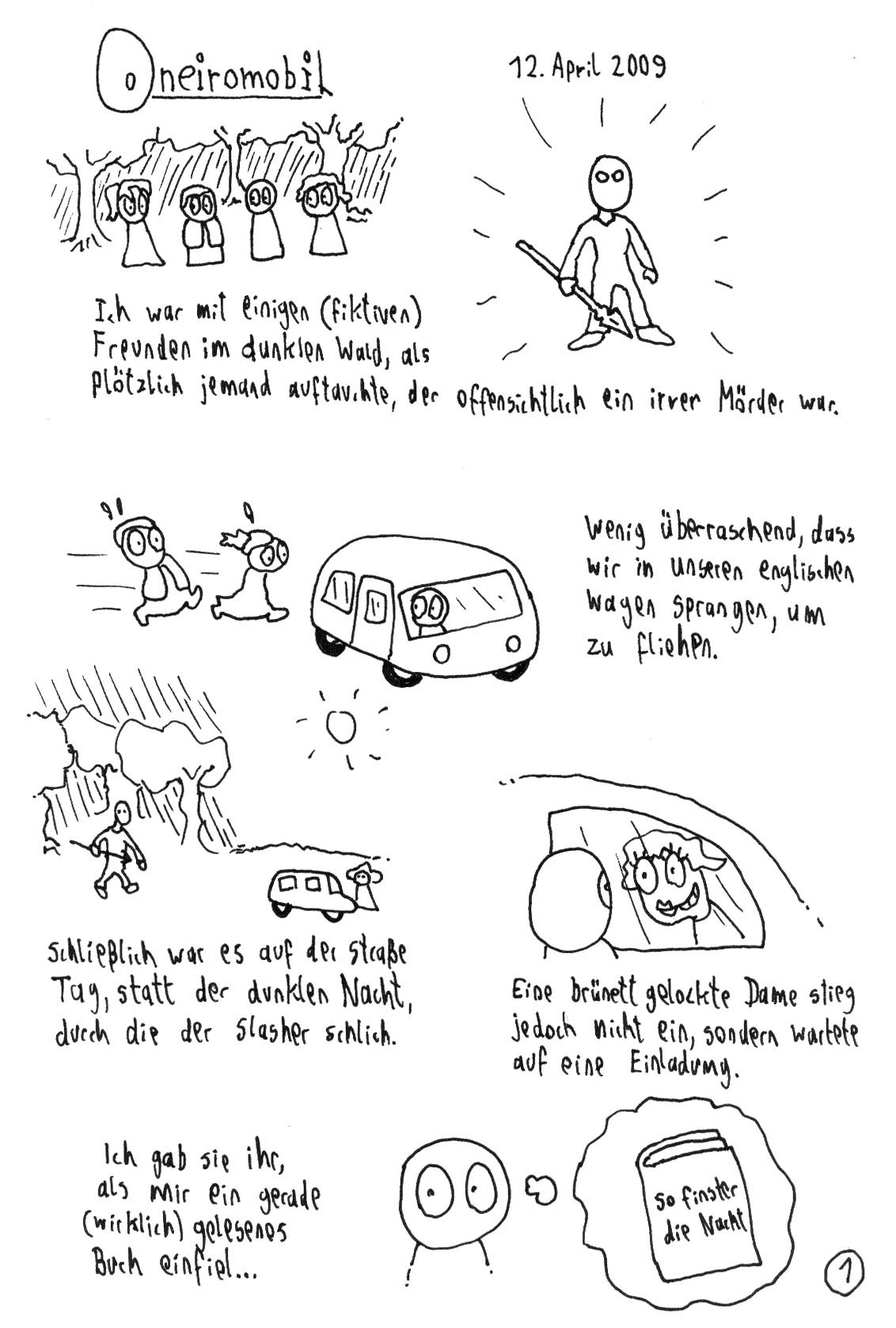 Ein einziges Mal habe ich auch versucht einen Traum in Comicform zu erzählen. Leider ist der Traum sehr düster und passt hier nicht her.