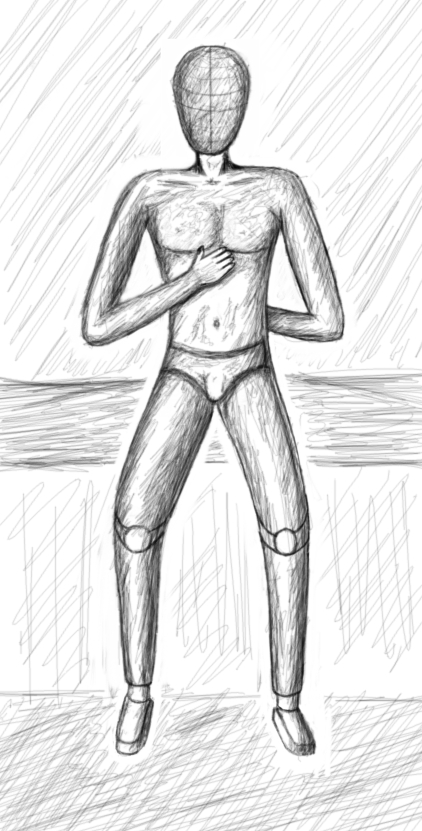 zu der skizze: die props find ich in ordnung, außer dem (von uns aus) linken arm. is der so kurz, weil der auf uns zukommt? dann müsste theoretisch die hand den arm etwas verdecken.