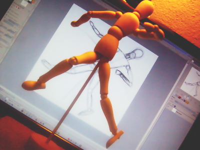 Vielleicht ist es noch ganz wissenswert, das ich die Pose von der Zeichnerpuppe erst gemacht habe als