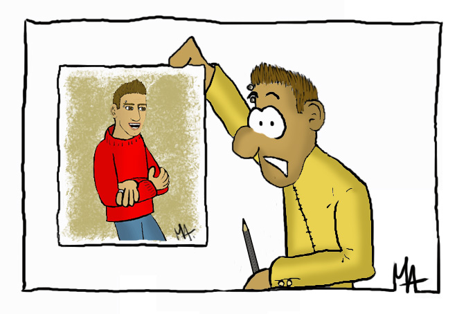 Karikaturen zu machen lag mir noch nie und deshalb blieb ich meinem Stil treu und habe Diese Zeichnung gemacht :] wer mich kennt, erkennt mich wieder ! :D