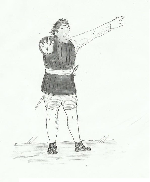 Mit dem Schwertknauf und der Hand, die ihn hält, hast Du etwas Schwierigkeiten (ist auch schwierig zu zeichnen), sonst super.