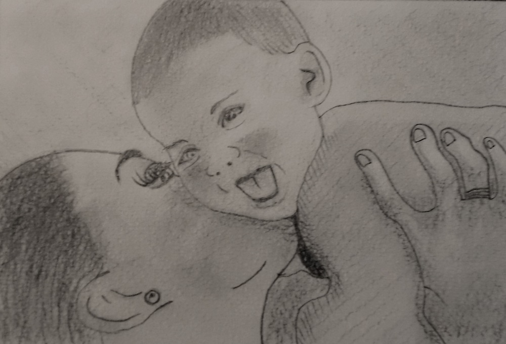 Sie ist definitiv eine glückliche Mutter, sie gibt ihrem Baby einen Kuss auf den Hals, wobei das Baby etwas kitzelig zu sein scheint und zugleich glücklich zum lachen beginnt. ;-)