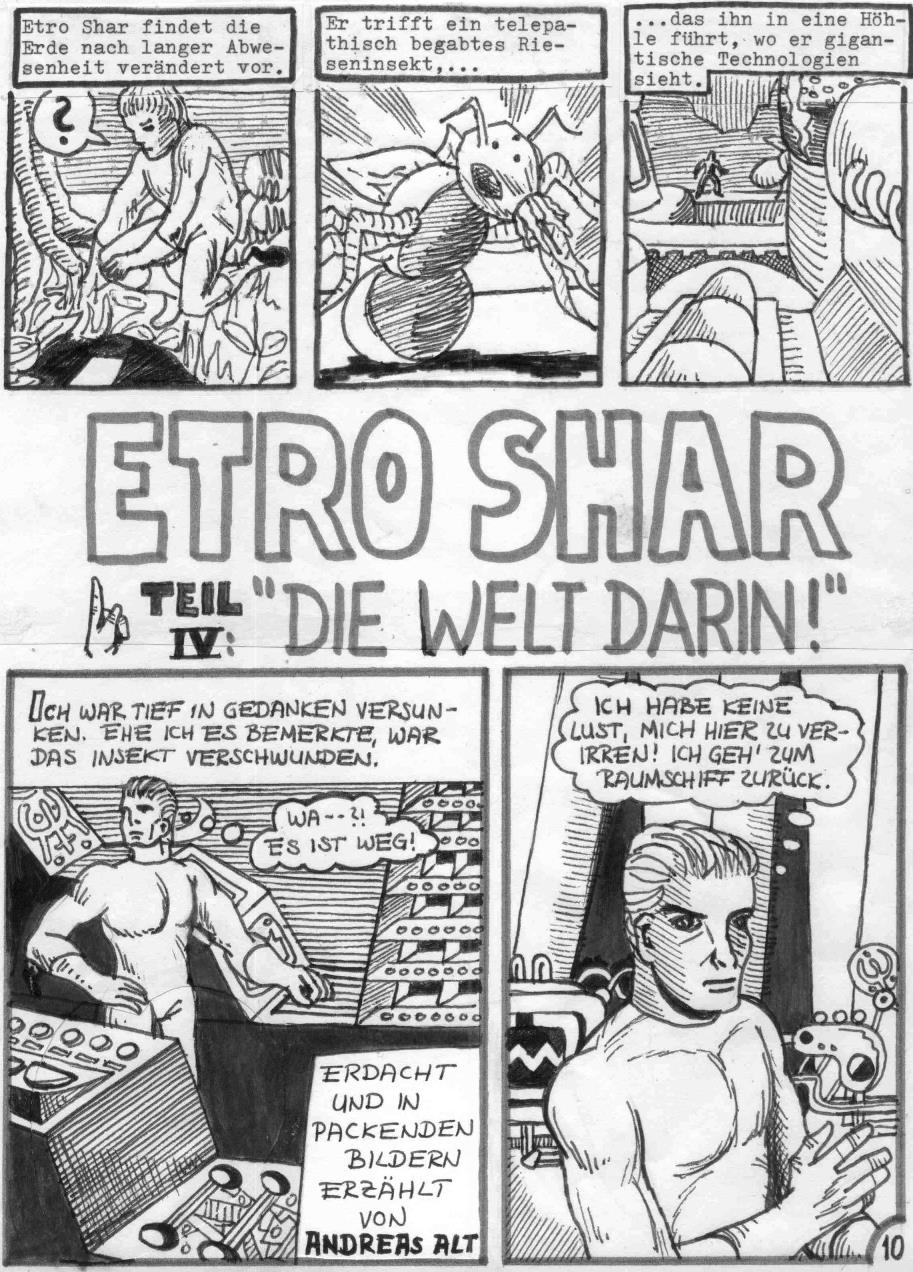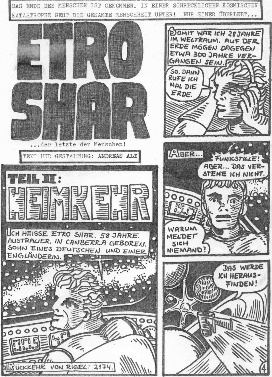 "Etro Shar" # 2 habe ich im August 1980 gezeichnet. Beim dritten und vierten Teil habe ich keine Entstehungszeit angegeben gesehen. Bei Teil 2 ist mir das Original verlorengegangen, ich habe nur noch nicht besonders tolle Fotokopien der Seiten.