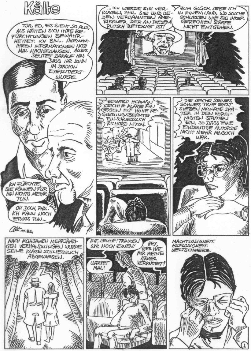 Hans C. Blumenberg, der Filmkritiker der "Zeit" sagte zu diesem Film allerdings mit etwas mehr Distanz als ich damals: "Costa-Gavras, der Grieche in Paris, reist in politischen Flugschriften schon fast so lange wie Antonioni in halbgefrorenen Beziehungsschmerzen. Der Mann ist wendig und redlich. Von diesem Vertreter würde ich bedenkenlos einen Gebrauchtwagen kaufen. In 'Missing' enthüllt er jetzt, wie Amerikaner am Coup gegen Allende beteiligt waren. Wer das schon weiß (also jeder, sogar die Kundschaft von der konservativen Presse), kann sich zum Trost am Spiel von Jack Lemmon erfreuen, der in Chile seinen verschwundenen Sohn sucht und auch allmählich merkt, was der Zuschauer schon als Gewißheit mit ins Kino nimmt. Ich stelle mir vor, daß Costa-Gavras für 'Missing' in Cannes einen Preis gewinnen wird. Seine Militanz setzt sich immer durch. Dafür wird schon der amerikanische Konzern sorgen, der ''Missing' weltweit vertreibt."