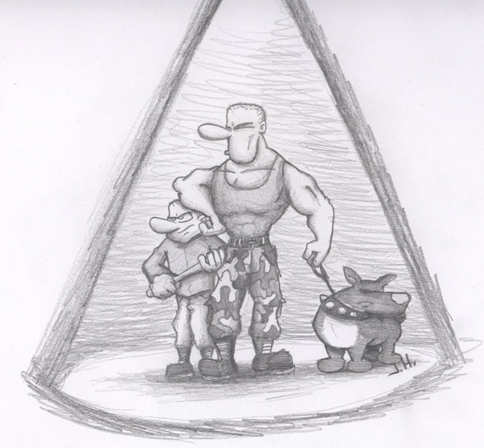 Sein linker Ellenbogen ist etwas zu markant. aber sonst kommt deine Bleistift Colo und die Figuren super rüber