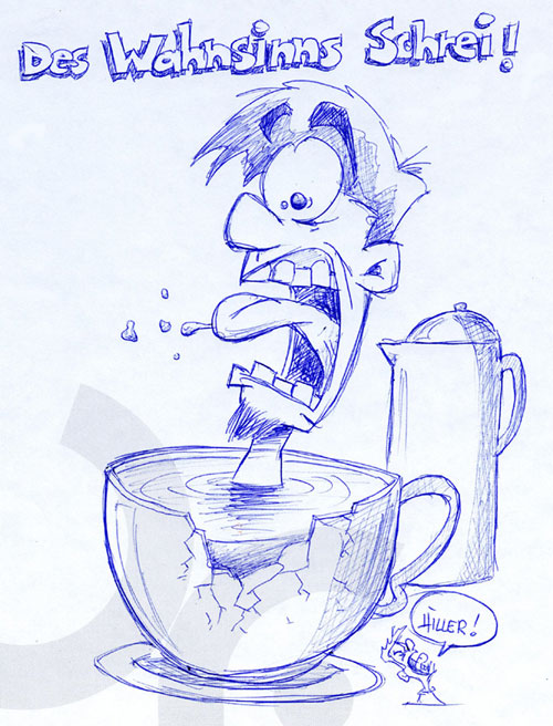 Hab gestern beim Fernsehen ein bissl rumgekritzelt und die Abgründe meiner, vom Wahnsinn geschwängerten, Seele auf Papier gebannt.