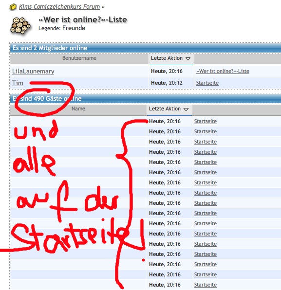 Lieber Besucher, herzlich willkommen bei: Kims Comiczeichenkurs Forum. Falls dies dein erster Besuch auf dieser Seite ist, lies bitte die Hilfe durch. Dort wird dir die Bedienung dieser Seite näher erläutert. Darüber hinaus solltest du dich registrieren, um alle Funktionen dieser Seite nutzen zu können. Benutze das Registrierungsformular, um dich zu registrieren oder informiere dich ausführlich über den Registrierungsvorgang. Falls du dich bereits zu einem früheren Zeitpunkt registriert hast, kannst du dich hier anmelden.