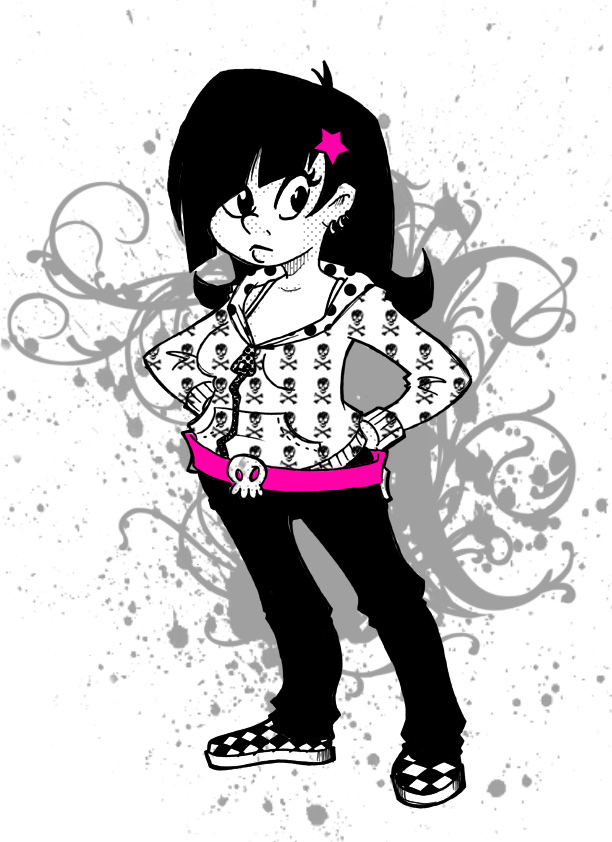 Aber ansonsten gefällt sie mir, nur bis auf die Jacke, die so in der Hose steckt. Und die Vans, die Original-Vans von ner Freundin sind nicht bis nach hinten kariert