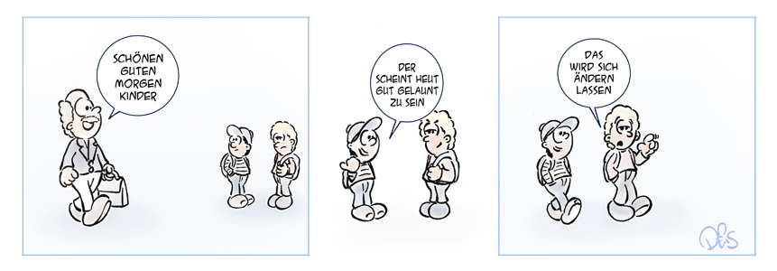Der ist auch wieder lustig. Wenn Lehrer allerdings schlecht drauf sind, gibts mehr Hausaufgaben.. ;)