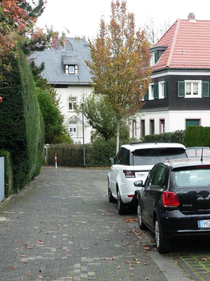 Dann fuhr ich zurück und nach Frankfurt-Griesheim. In der Straße, in der ich gewohnt habe, sind ziemlich frisch ein paar Häuser abgerissen worden, und ich dachte, da war wohl meins auch dabei. Aber ich habe es dann doch wiedergefunden. Nur die Bäume im Garten waren viel mächtiger als in den 90er Jahren; daher hätte ich es beinahe übersehen. Der Charakter der Straße hat sich aber ziemlich geändert, ohne daß ich sagen könnte, was genau sich geändert hat.