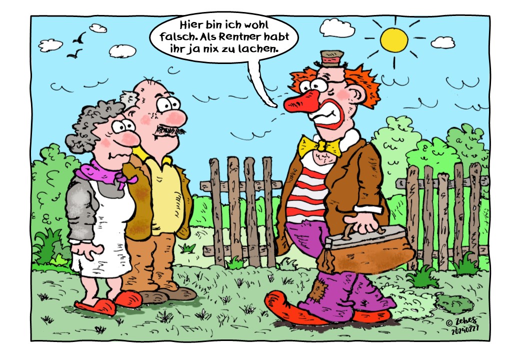 Aber der Gag *zündet* mMn nicht so ganz: Wenn die Rentner sonst nix zu lachen haben, müsste der Clown doch eigentlich ganz gelegen kommen. ;)