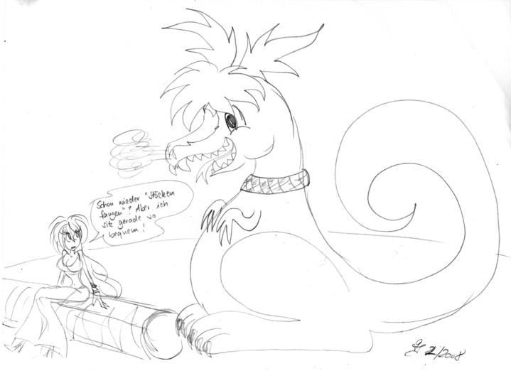 Um mal wieder auf harmlosere Dinge zu kommen - der gute Karl meinte ja, "jeder, der was auf sich hält, zeichnet zur Zeit Drachen". Das konnte ich nicht auf mir sitzen lassen. :D