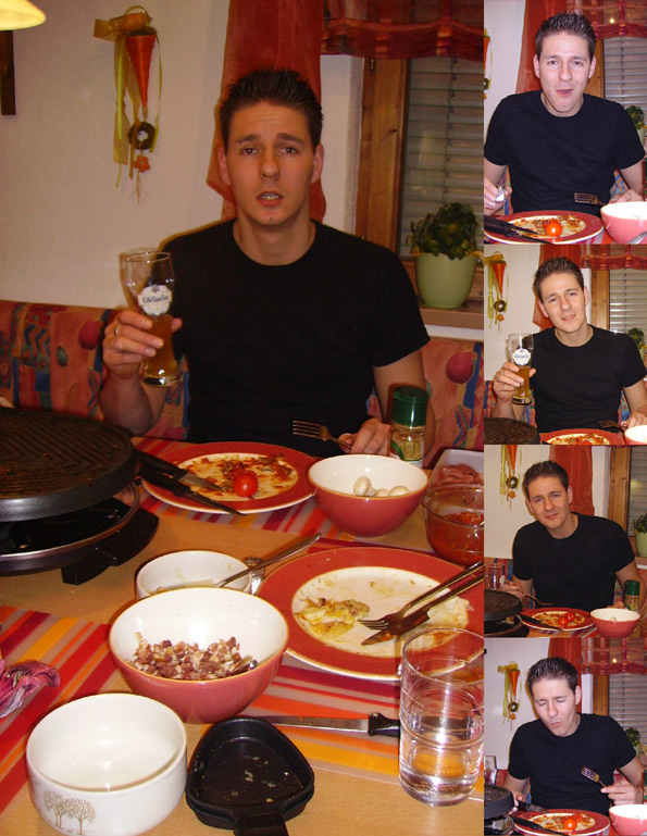 Hey, dapainta, dein Raclette sieht irgentwie speziell aus (ich schau den Leuten eben gern in den Teller...). So ein richtiges Schweizer Raclette besteht aus Kartoffeln und Käse....ist deins eine Variation? Prost jedenfalls, - hoffe, es hat geschmeckt :]