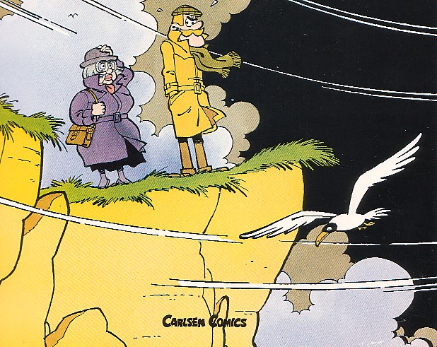 Den mit Schildkröte und Lemming finde ich ok, vielleicht stört mich etwas, dass die zweite "Person" nicht unbedingt eine Schildkröte sein muss. Aber noch was zu dieser Klippe: Ich finde es schöner, wenn man senkrecht Struktur reinbringt als wie du waagerecht - siehe etwa unten (Coverausschnitt von Percy Pickwick 4: Mord am Meer von Turk/de Groot). Nur für den Fall, dass du in Zukunft gewissen anderen deutschen Lemmingzeichnern Konkurrenz machen willst ;))
