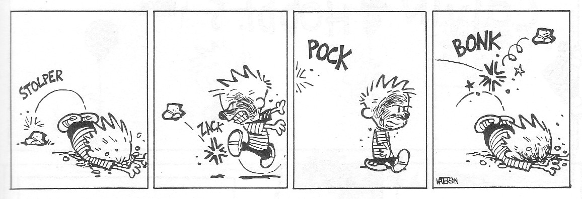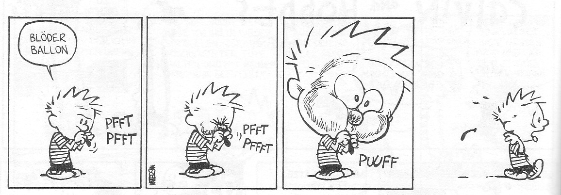 Hm, da habe ich durch zu große Kürze mal wieder nicht klar machen können, worum es mir geht :( Na ja, dann hier nochmal ausführlicher und anhand von Sir Kays Beispiel, Calvin und Hobbes:
