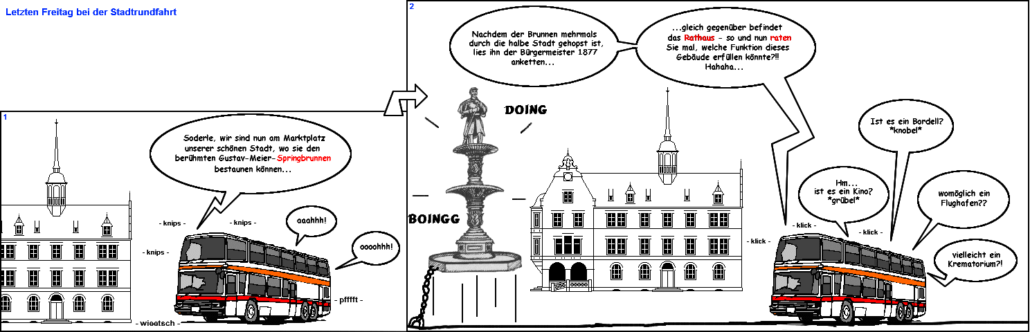 Den klassischen Gag mit dem Springbrunnen hab ich aus dem MAD-Magazin entnommen :D