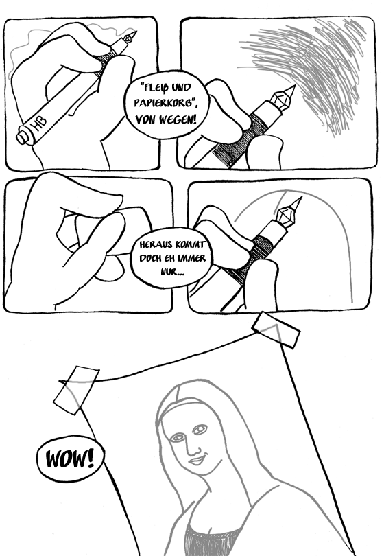 @Jänkii: Ich inke mit Feder und Tusche, und die Feinheiten mache ich mit Edding 1800 0,7-0,1mm. Die Augen sind bei der "echten" Mona Lisa auch so, drum hab ich sie auch so gemacht.