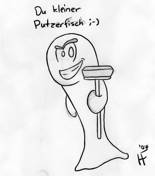 Die erste Skizze ist in der Schule (Musikunterricht) innerhalb von 3 Minuten entstanden, und zwar während eine Freundin die Tafel wischte (drum auch der Spruch). Vor 5 Minuten Geinkt am PC.