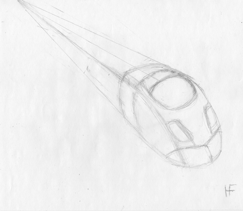 Mal was anderes: Ich hab ein Problem. Für einen Auftrag (den hab ich im "Preisfrage"-Thread schon erwähnt) muss ich u.a. einen Zug zeichnen. Ich hab das noch nie vorher gemacht, und hab mir etwas ICE-ähnliches vorgenommen, weil ich den recht schick finde. Ich hatte da an einen bestimmten Betrachtungswinkel gedacht (siehe Abbildung). Leider hab ich kein exaktes Bild zur Vorlage, und hab mir deshalb einfach ein ICE-Bild von Google genommen, das ungefähr ähnlich aussieht. Ich hab jetzt mal versucht, meine Idee erstmal als Entwurf umzusetzen, glaube aber, dass dort irgendwas nicht so ganz stimmt ?( Könnt ihr mir da helfen, oder ist alles perspektivisch ok?