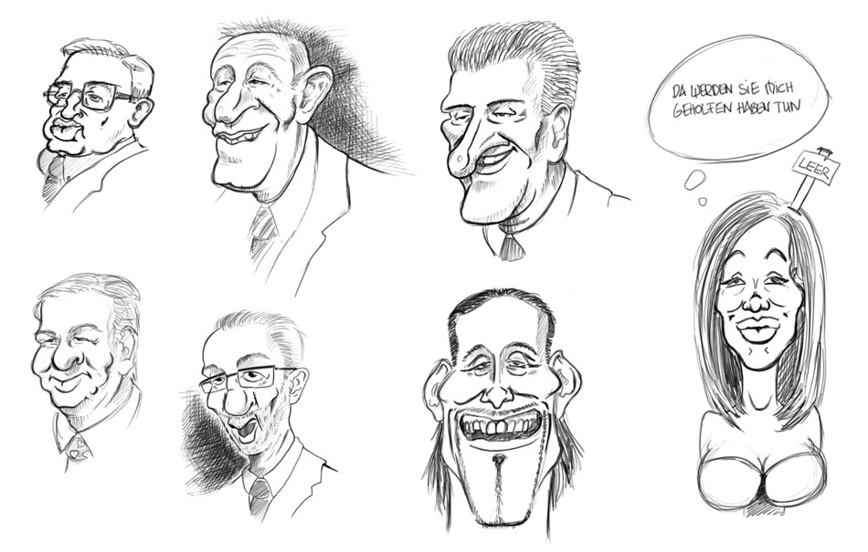 An Karikaturen erkennt man sehr gut, wie sehr der Zeichner die Fähigkeit besitzt zu abstrahieren, was ja eigentlich das A und O am Comic/Cartoonzeichnen ist (meiner Meinung nach). Es geht darum, das Bild (bzw das Gesicht) aufs Wesentliche zu reduzieren und neu zusammenzusetzen.