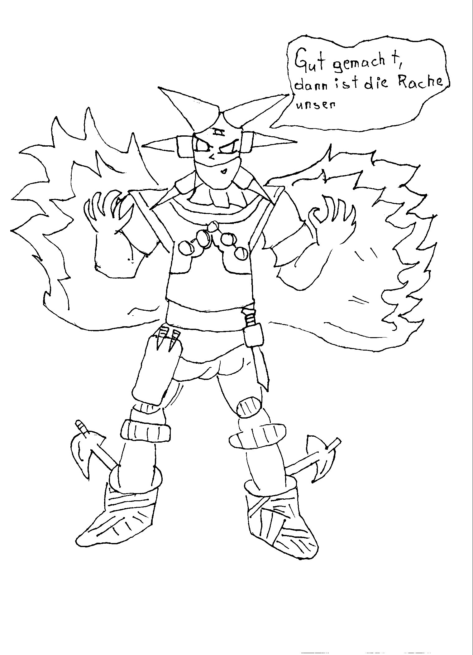 Zum Text: So Sachen wie "böses lach", "battle" und "****!" gehören in Internetlabereien oder in schlechte Mangas, finde ich. Lasst eure Charakter doch so reden, wie man im Alltag auch redet. Oder hab ich da was verpasst, dann versteh ich die Jugend von heute nicht mehr. :D Schlimmschlimm.