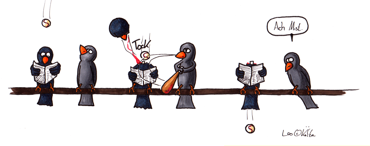 Aber Nr.9 ist ein bisschen überzogen, Vögel haben nämlich garkeine Baseballschläger