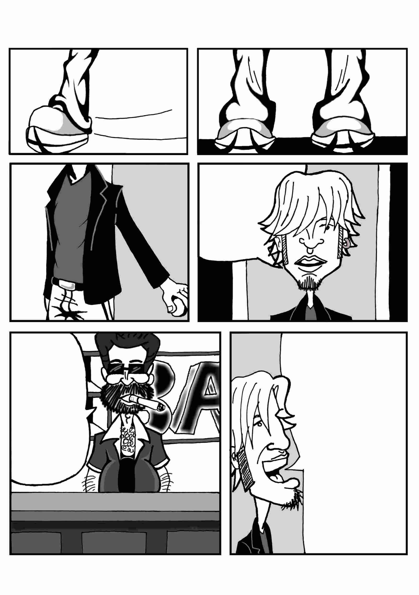 Der Barkeeper – ja stimmt er quetscht die Zähne, aber da ich weder rauche noch weiß, wie es aussieht, wenn einer mit ner Kippe Mund redet, weiß ich auch nicht wie ich es sonst zeichnen soll, aber vielleicht gibt’s du mir einfach einen Rat, wie es aussehen könnte ... das gleiche ist mit den Rauch ....