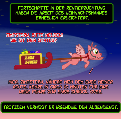 So, und jetzt schnell noch mal was mit Rentieren so lange noch Weihnachten ist. (Und dann hab ich erstmal die Nase voll von dem Thema... ^^)