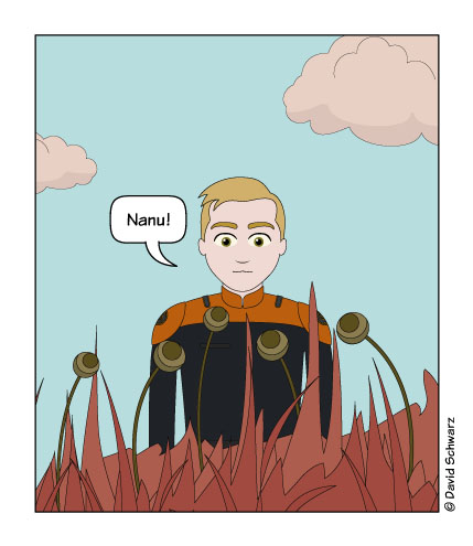 Die Stämme der weiter entfernten Bäume sind vielleicht noch etwas zu rötlich, die dürften fast schon ein wenig mehr in Richtung eines sehr entsättigten, dunklen Grüns gehen