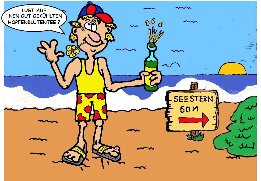 Nur die Horizontlinie gehört wieder sehr viel tiefer und die Linie zwischen Strand und Wasser gerader. Ich verstehe auch nicht viel von Perspektive, Konstruktionszeichnen und so, aber stell dir vor, du würdest vor deinem Sommerhungrigen, nennen wir ihn Paul, bäuchlings im Sand liegen. Dann würdest du ihm nicht nur von unten in die Nase schauen, sondern du würdest auch weniger von Strand und Meer sehen. Die Horizontlinie würde also runterrutschen.