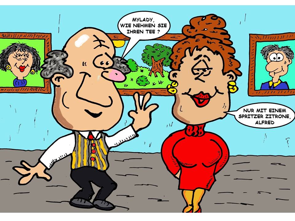 Diese beiden Cartoons finde ich ziemlich gelungen. Die Dame mit dem "tieh eitsch" ähnelt verblüffend meiner alten Englischlehrerin...
