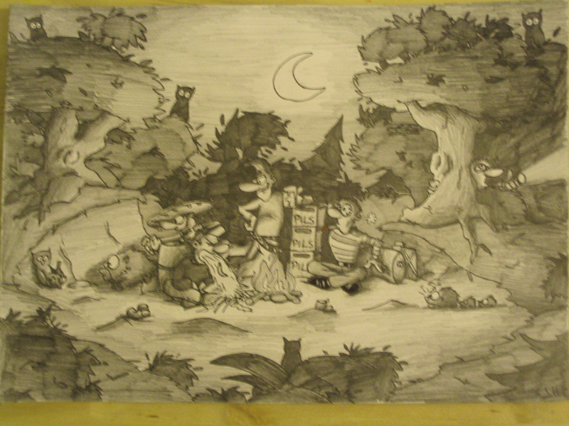 8oZarni......BOOOOAAAAAAHHH ist des geil, sehr unscharf und vieles schwer zu erkennen aber das was ich erkennen kann ist alles super, Deine Art zu Schattieren ist so Hammerstark, zBsp.: die Rinde am rechten Baum, das wirk alles richtig dreidimensional, hi hi die rote Glut kann ich natürlich auch erkennen :D :D Uhu wird sich bestimmt freuen über so viel Verwandte :D :D ;) auf Deinem Bild, LOOOOOOOL der eine Uhu ist besoffen, looool. Respekt Zarniwoop 8o