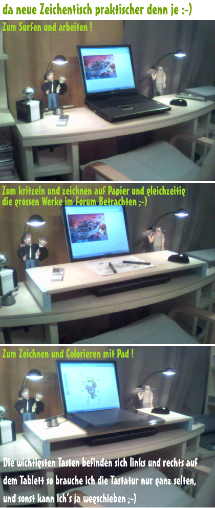 3. Einen ÜberDrüberDraufstelltisch gebastelt damit ich nicht immer das Pad am Schoss liegen haben muss beim colorieren und auch für's konventionelle Zeichnen den Laptop nicht immer hinher schieben muss ;) =)