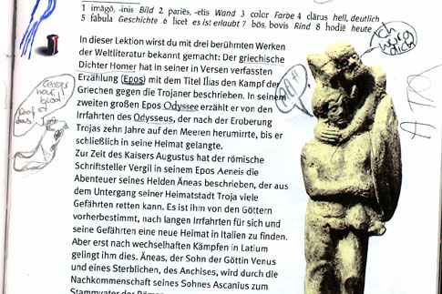 Warum sollte ich denn böse sein? Weil Du das Würmchen so sehr magst, dass Du es sogar in Deine Schulsachen malst?