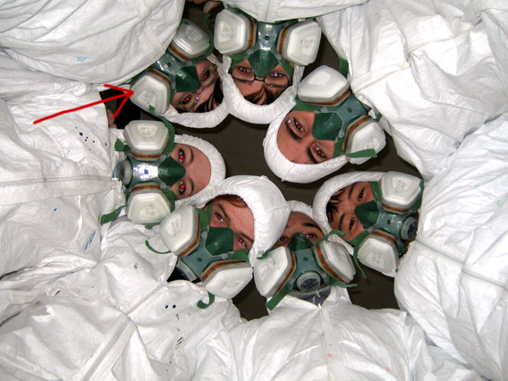 In der Schule beim Lackieren in voller Montur! Da lassen sich so herrlich sinnlose Fotos mit machen :]