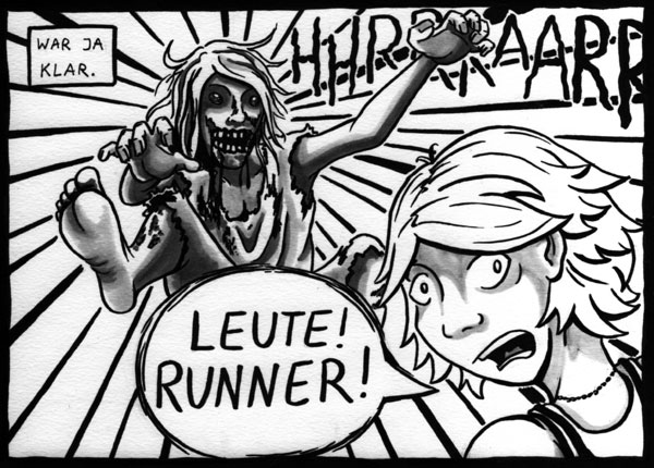 un ich glaub was auch cool kommen würde, wenn die Zombies noch etwas ekliger aussehn, mit runterhängender und verfärbter Haut. Halt einfach das der Verwesungsprozess schon etwas fortgeschritten ist.