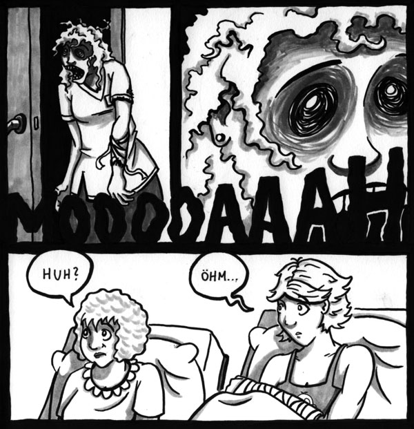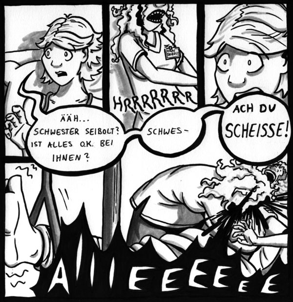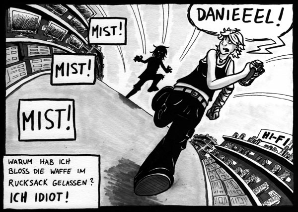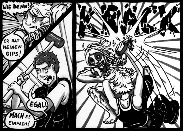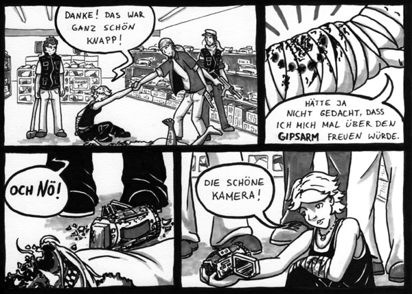 Vielleicht ein zwei kleine Bemerkungen, unzwar würd ich versuchen die Gesichter mehr zu überzeichnen, das sie