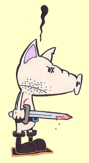 Tja, wenn sich kein weiterer Freiwilliger findet, müsst ihr halt jemanden anheuern, der für Geld kämpft... einen Söldner! Zufällig kenne ich ein Söldnerschwein namens Tiro, das früher bei vielen meiner Comicseiten mitmachte, gerade aber ohne Anstellung ist. Ich habe mal unverbindlich nachgefragt, und er hat gesagt, wenn ihr unbedingt einen zwölften Teilnehmer braucht, würde er mitmachen... Aber wenn es auch mit elf Teilnehmern klappe, bliebe er genauso gern zu Hause