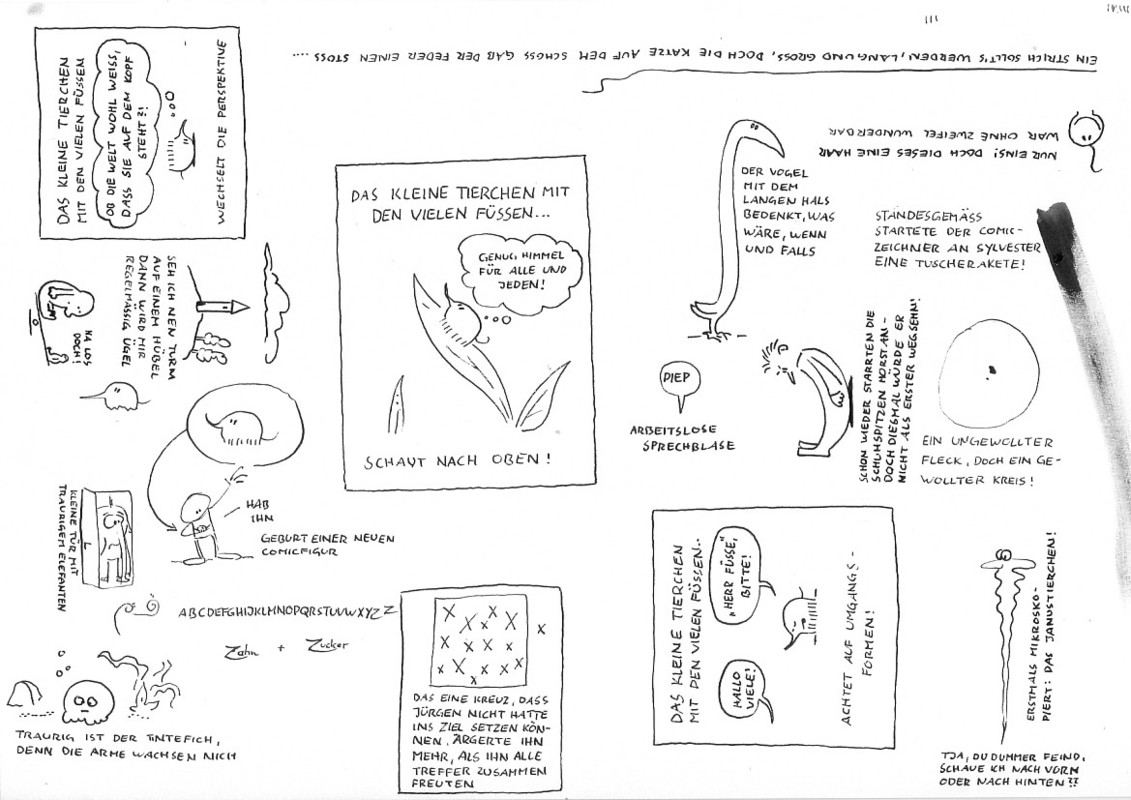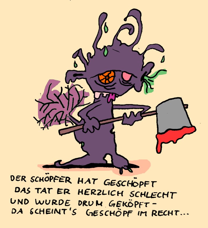 Habe mal wieder mit meiner feinen Feder rumgespielt - und mich vom Reimfimmel leiten lassen ;) demnächst wieder etwas, das wenigstens ansatzweise als Cartoon durchgehen kann, aber im Moment habe ich halt an so was meinen Spaß :)