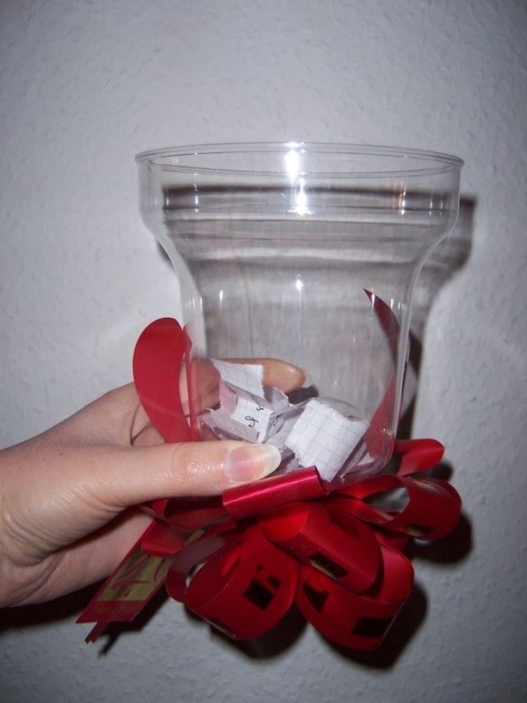 Unten seht ihr noch ein Bild der Wahlurne - damit ihr wenigstens wisst, warum ich mir mit Mon Cherie den Magen verderben musste. :D