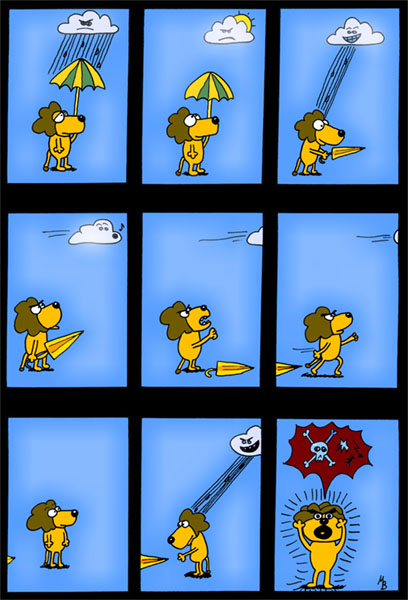 Hehehe... Der Kampf mit der Regenwolke. Klasse Idee.