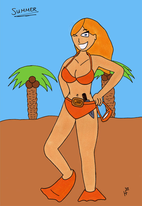 Ich hab mal wieder ein neues Bild gemacht. Das ist für meinen Vater zum Geburtstag und stellt das bisher erste Bild eines Jahreszeiten-Kalenders dar, den ich plane. Also für den Sommer. Bei dem Bild hab ich mich bei der Lady nochmal so richtig schwer getan, hoffe aber, das es trotzdem gefällt. also, das Mädl hab ich mit Copics gemacht, und den Rest dann mit Photoshop, weil ich es nicht hingekriegt hab, den Himmel- bzw den Sand flächig zu kolorieren.