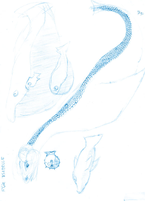 soweit ich erkenne, tiere unterwasser. aber es steht auf der seite, das erschwert alles. (krampf im nackenn...aua!^^)