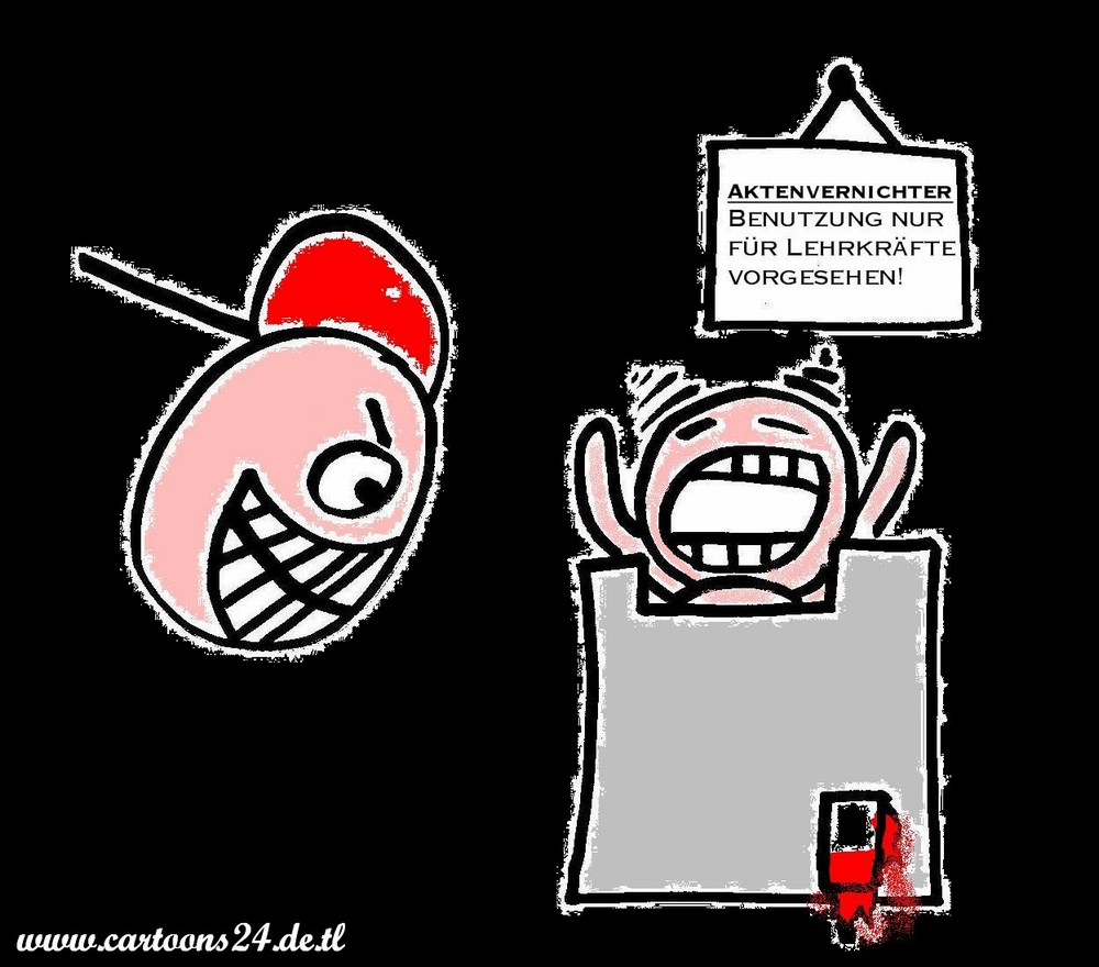 Gut hingegen fand ich die Farbgebung beim Dickmilch und Referat-Cartoon. Ich denke, wenn Du mehr in die Richtung gehst wie bei den Zeichnungen und der Kolorierung bei den beiden Cartoons, kannst Du auch mit deinem Stil die Gags besser rüberbringen.