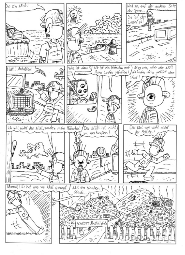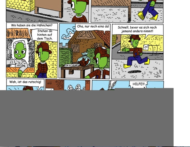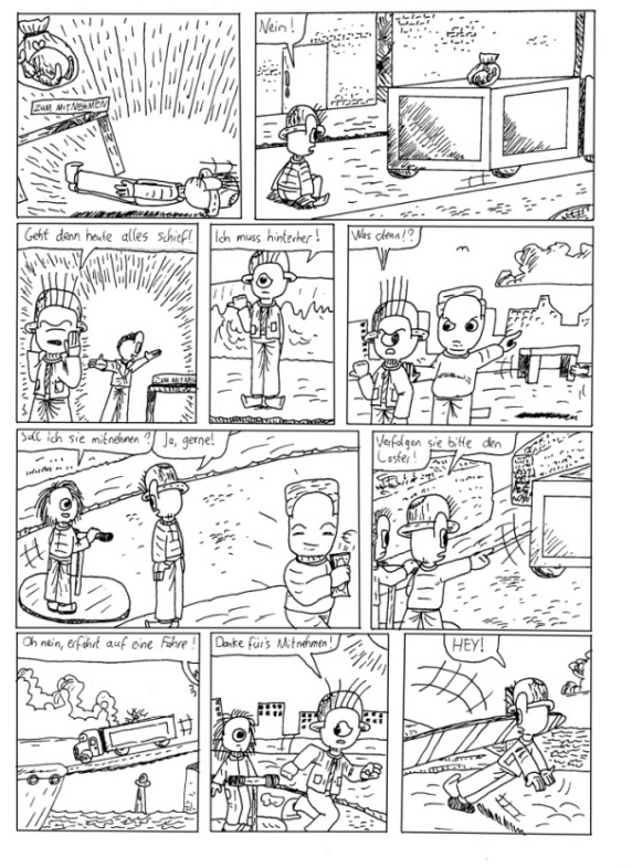 Sind meinerseits eigentlich nur Kleinigkeiten anzumerken, zB auf Seite 4 im letzten Panel der dritten Reihe, da musst du entweder das rechte Bein vor oder den linken Arm zurück holen.