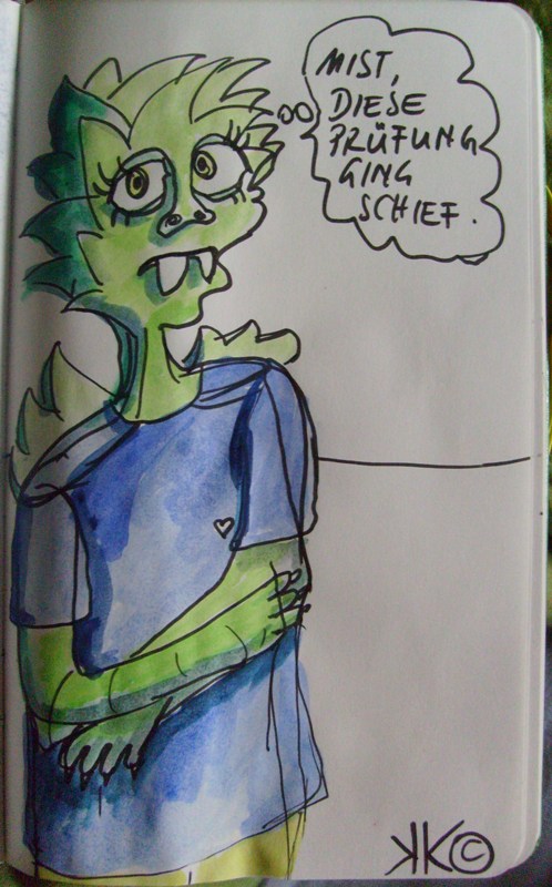 Die Prüfung ging schief - gefällt mir, vor allem, wenn man dazu die schiefen Schultern sieht.
