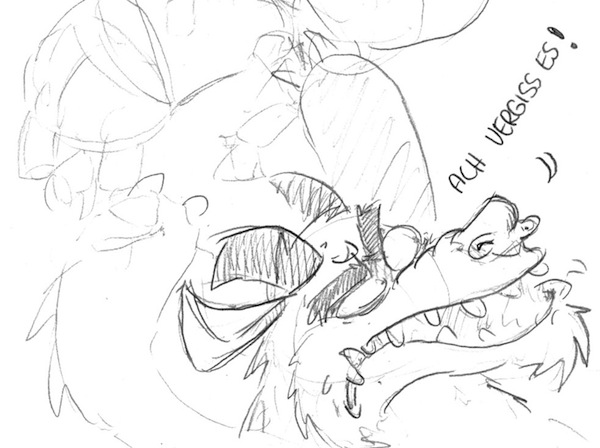 Das ist toll! Was will man sonst noch dazu sagen? Ich wäre neugierig, wie du mit Text umgehst, oder mit einer Bildsequenz. Bis jetzt sind es Figurenentwürfe und Einzelillustrationen. Aber wie erzählst du eine kurze (oder auch längere) Episode? Hast du keine Lust, das mal auszuprobieren?