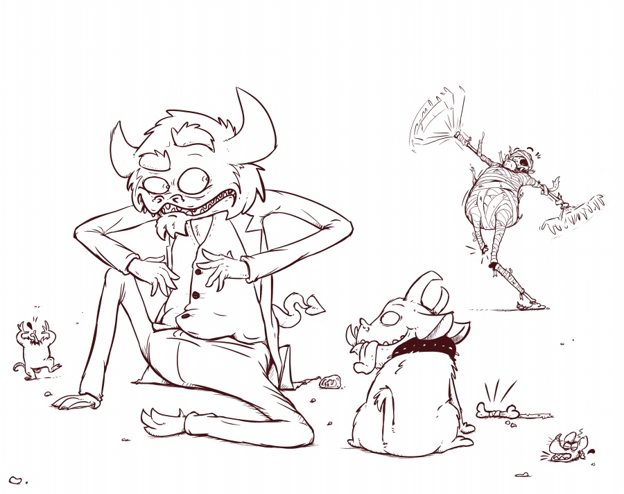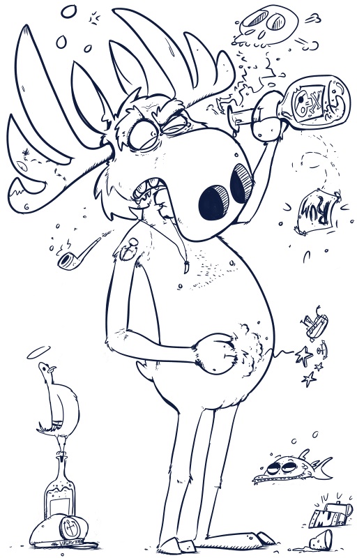 Aaaaber zurück zum Thema. Hab mich in den letzten Tagen an meinen Tablett gesetzt und ein bissen das "Linearten" geübt. Ich wollte ein paar Monster (bzw wieder den Elch) von den vorherigen Skizzen genauer ausarbeiten. Das lustige ist, dass ich diesesmal kein Papier genutzt habe (ahh die Regenwälder schonen jaja :D ) sondern gleich aufm PC losgelegt habe.