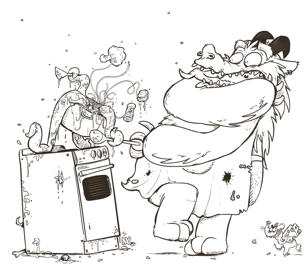 Ich kann mich nur den anderen anschließen, du zeichnest echt erste Sahne. Vorallem mag ich deine Strichführung & dass (als Beispiel der Backofen) nicht alles perspektivisch richtig sein muss; dass gibt der ganzen Sache eine sehr schöne Dynamik. Mich erinnern deine Monster an den Pixar-Film "Monster AG". Klar, sie bedienen ein paar aktuelle Klischees in Richtung "Monster", was ich jedoch nicht wirklich schlimm finde.